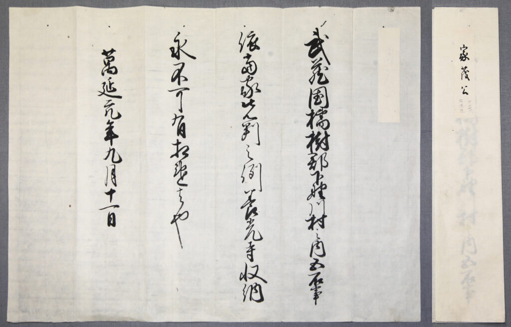 万延元年御朱印状 2026 1/27 万延元年御朱印状 「家茂公」は14第将軍・徳川家茂(在任1858~1866)である。 未分類 よかったらシェアしてね! URLをコピーしました! URLをコピーしました! 寛永19年御朱印状 新編武蔵風土記稿-1 この記事を書いた人 MikoMtumoto 関連記事 白衣観音の大絵馬 石灯籠 新編武蔵風土記稿-3 新編武蔵風土記稿-2 新編武蔵風土記稿-1 寛永19年御朱印状 長弁私案抄(注釈) 長弁私案抄(解説2・出展) コメント コメントする コメントをキャンセルコメント ※ 名前 ※ メール ※ サイト 次回のコメントで使用するためブラウザーに自分の名前、メールアドレス、サイトを保存する。