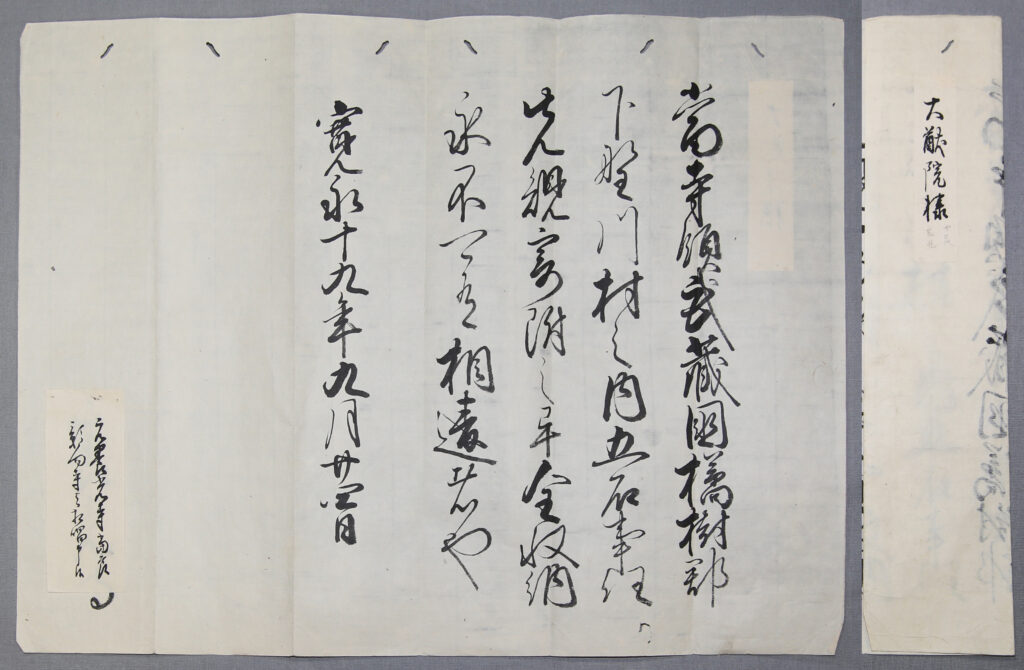 寛永19年御朱印状 2026 1/27 寛永19年御朱印状 影向寺は徳川幕府より五石の朱印地を賜わった。朱印状写しは寛永19年(1642)の「大献院(たいゆういん)様」とあり徳川家光から万延元年(1860)まで賜った。現在写しが9通残されている。 未分類 よかったらシェアしてね! URLをコピーしました! URLをコピーしました! 長弁私案抄(注釈) 万延元年御朱印状 この記事を書いた人 MikoMtumoto 関連記事 白衣観音の大絵馬 石灯籠 新編武蔵風土記稿-3 新編武蔵風土記稿-2 新編武蔵風土記稿-1 万延元年御朱印状 長弁私案抄(注釈) 長弁私案抄(解説2・出展) コメント コメントする コメントをキャンセルコメント ※ 名前 ※ メール ※ サイト 次回のコメントで使用するためブラウザーに自分の名前、メールアドレス、サイトを保存する。